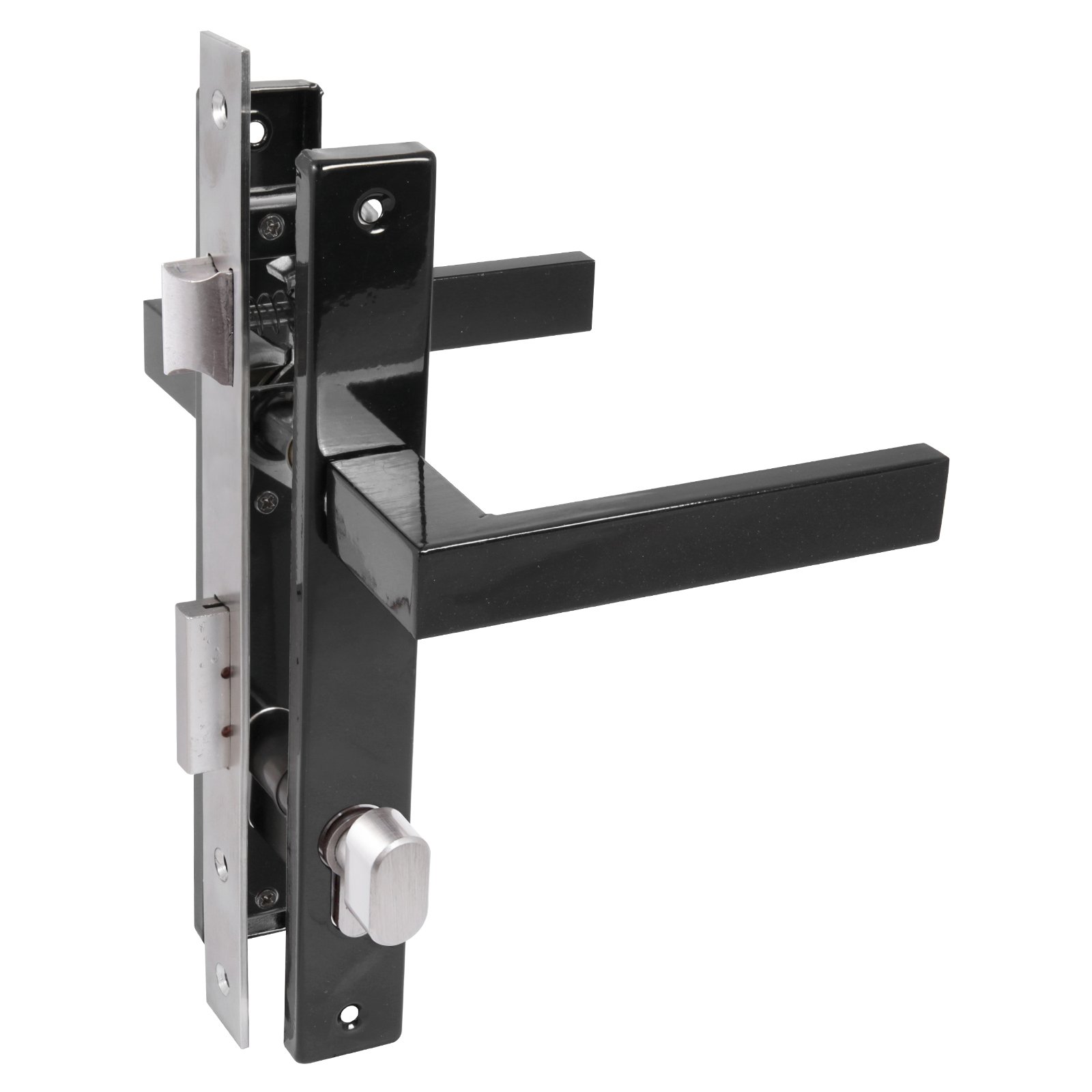 Замок врезной с ручками. Предназначен для установки в калиточные двери, правого и левого открывания.Возможна установка в деревянные двери, а так же двери из алюминиевого профиля. Дверь может быть закрыта на защелку и открыта с помощью фалевой ручки при открытом засове замка. Универсальная защелка. Корпус и торцевая планка из нержавеющей стали. Межосевое расстояние 85мм. Удаление ключевого отверстия 20мм. Ручки с полимерным покрытием по каталогу RAL. Материал - сталь. Механизм секрета с перфоключом, длина 70 мм, 5 ключей. Материал - цинковый сплав