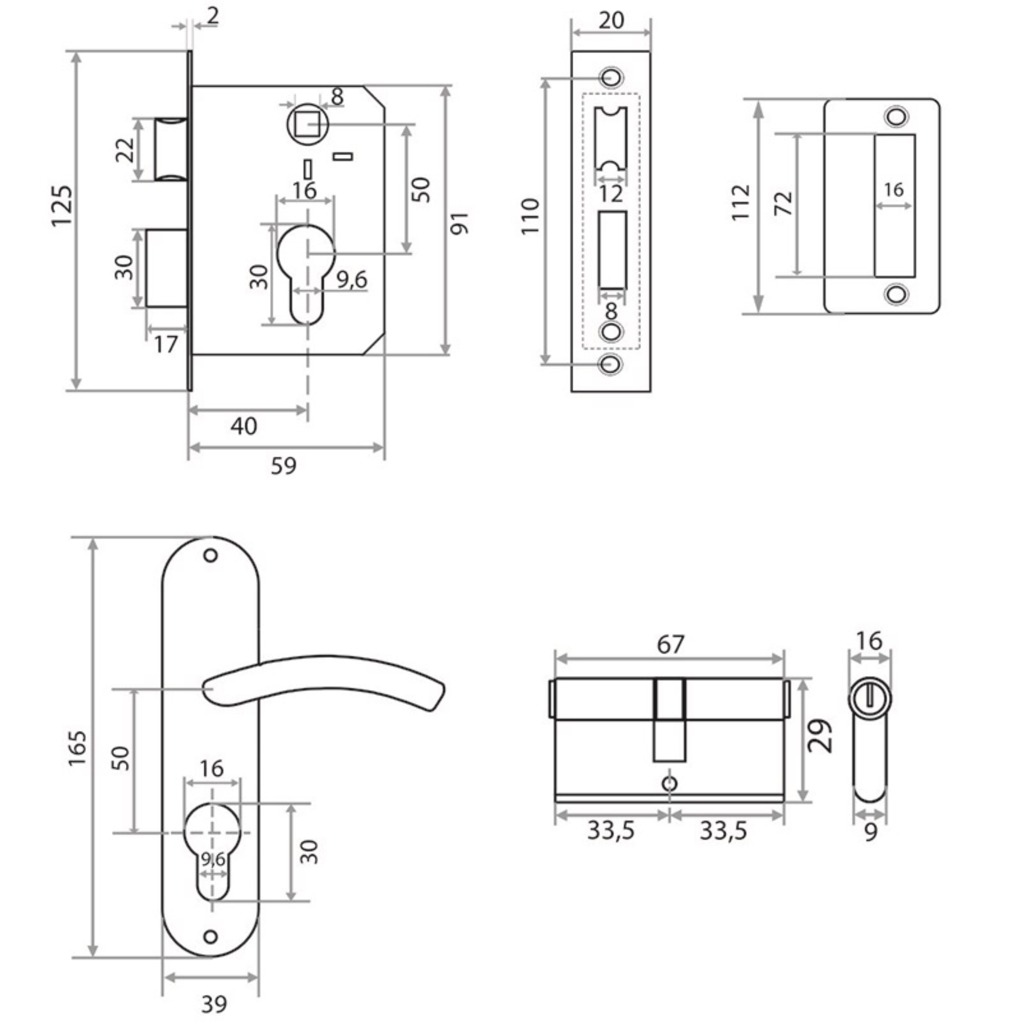 Замок врезной Vrata 50/106-ЦМ70 цилиндровый с защелкой, с ручкой, бронза