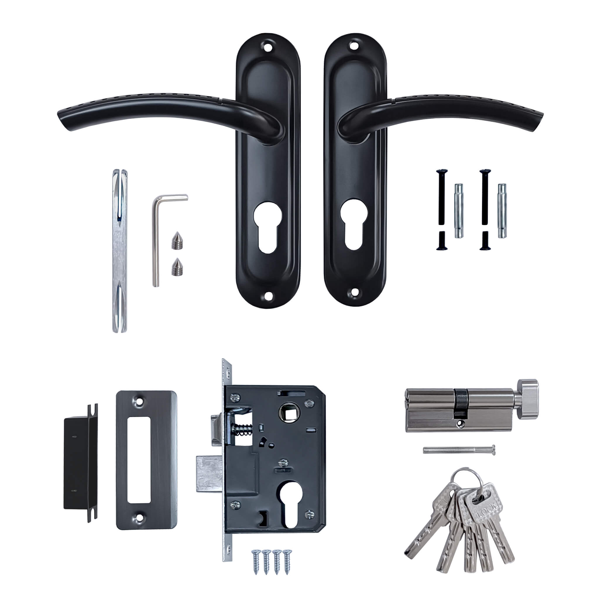 Замок врезной 50/LA02 межосевое 50 мм ключ/вертушка BL (черный) MARLOK
