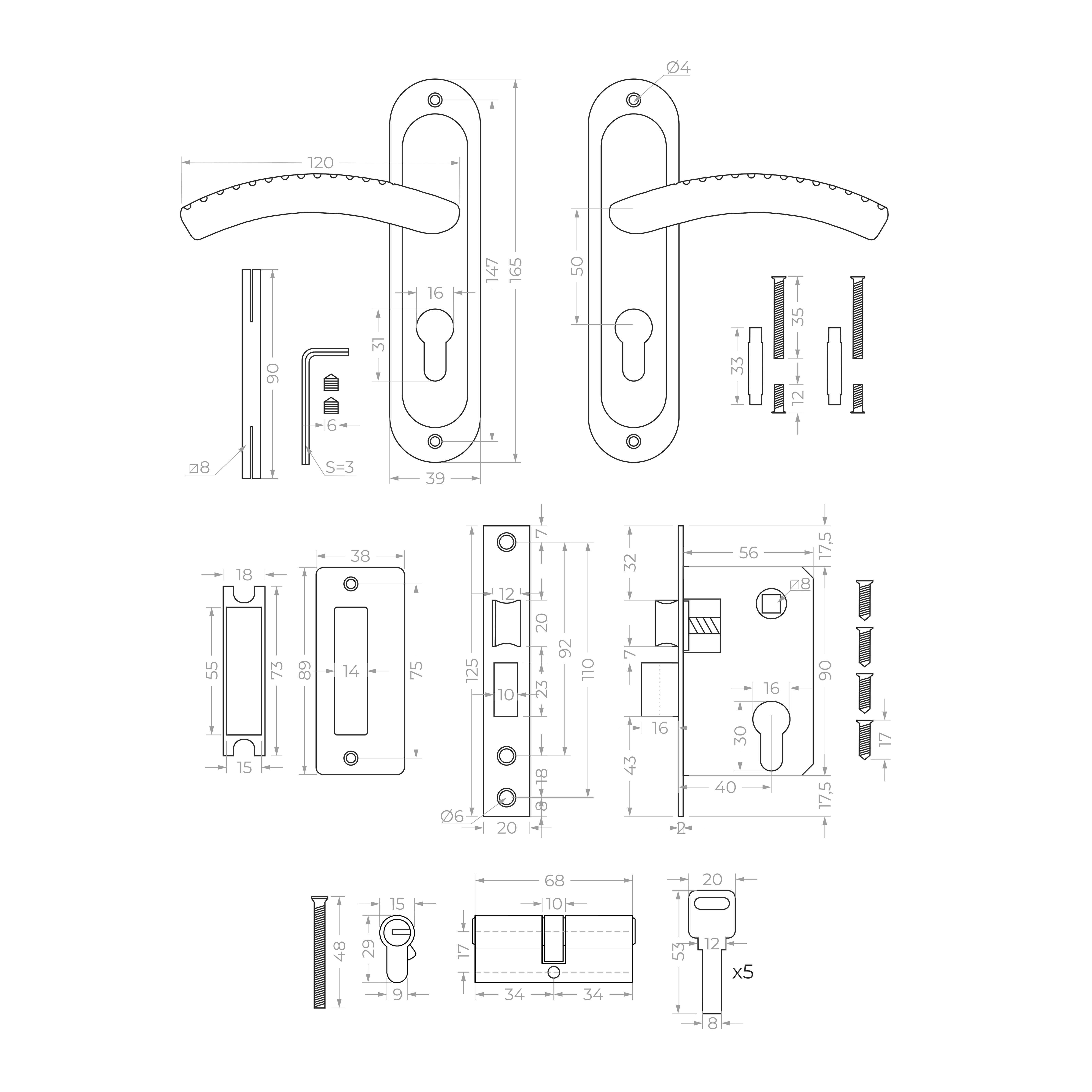 Замок врезной 50/LA02 межосевое 50 мм ключ/ключ BL (черный) MARLOK