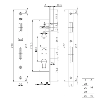 Замок врезной цилиндровый узкопрофильный KALE KILIT 153P,85BS25,16CP,w/o SP,w/o Ros,STB