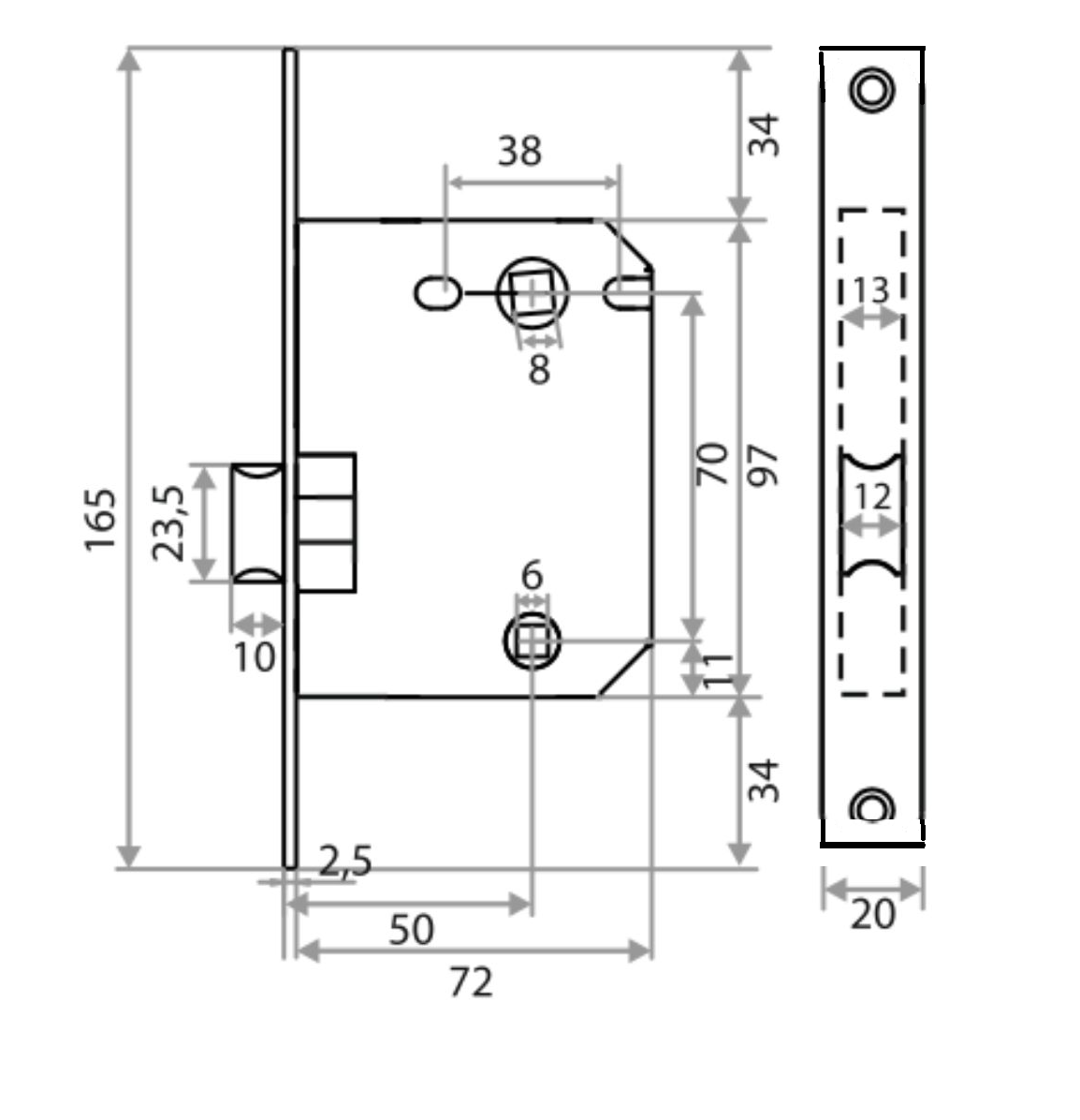 Размер сечения квадрата: под ручку - 8 мм, под поворотную ручку - 6 мм.